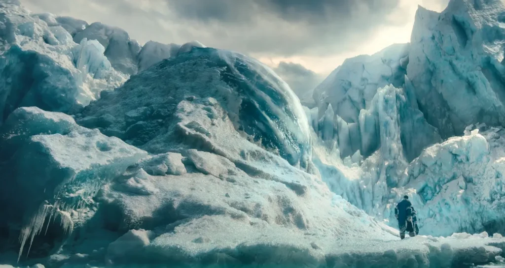 Nesse ponto, podemos ver o tão emblemático iceberg, onde Aang ficou congelado por cem anos. A cena impressiona pela riqueza de detalhes e como o CGI ficou satisfatório. Desde o início, a Netflix vem afirmando que o investimento para o live-action de Avatar era grande, mas somente vendo com os próprios olhos podemos confirmar o quanto eles se empenharam.
